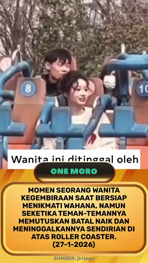 Momen seorang #wanita kegembiraan saat bersiap menikmati #wahana, namun seketika #teman-temannya memutuskan batal naik dan meninggalkannya sendirian di atas roller coaster.