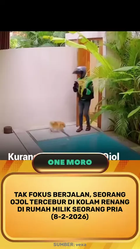 Tak fokus berjalan, se#orang ojol tercebur di kolam renang di #rumah milik seorang #pria