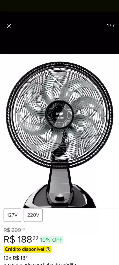 ventilador de mesa e parede WAP Flow Turbo. Potência: 180W. Pás: Possui 8 pás com design aerodinâmico para grande vazão de ar. Velocidades: Oferece 3 opções de velocidade (silêncio, brisa e turbo). Voltagem: Disponível em 127V ou 2 Garanta a sua agora mesmo. 👇👇👇👇👇👇👇👇 https://mercadolivre.com/sec/1Kxbzzw