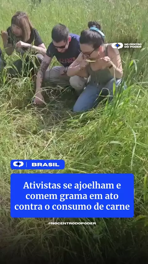 Ativistas se ajoelham e comem grama em ato contra consumo de carne
