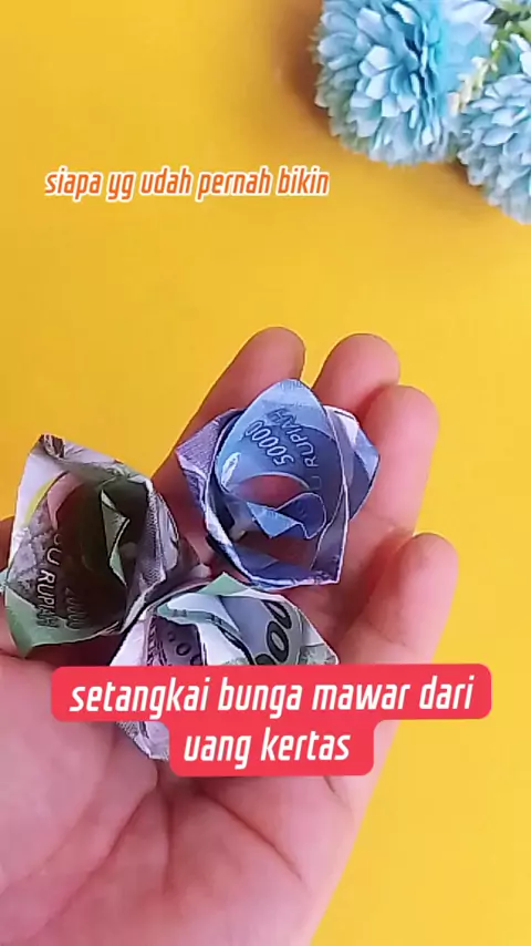 melipat uang kertas bentuk setangkai bunga mawar kuncup indah #kreasi #moneyorigami #DIY #idekreatif #craft