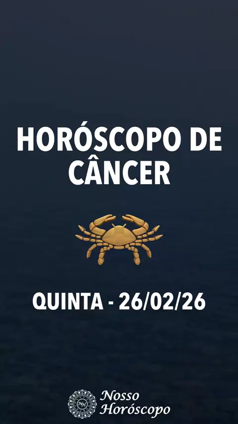 HORÓSCOPO DE CÂNCER - 26/02/2026 Horóscopo do Dia para o Signo de Câncer. Previsão oferecida por Nosso Horóscopo (https://www.nossohoroscopo.com). #câncer #astrologia #horoscopo #previsão #signo