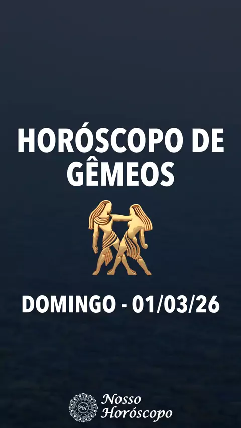 HORÓSCOPO DE GÊMEOS - 01/03/2026 Horóscopo do Dia para o Signo de Gêmeos. Previsão oferecida por Nosso Horóscopo (https://www.nossohoroscopo.com). #gêmeos #astrologia #horoscopo #previsão #signo