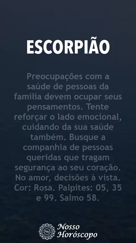 HORÓSCOPO DE ESCORPIÃO - 07/03/2026 Horóscopo do Dia para o Signo de Escorpião. Previsão oferecida por Nosso Horóscopo (https://www.nossohoroscopo.com). #escorpião #astrologia #horoscopo #previsão #signo