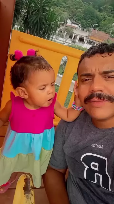 Ser pai é amar e desesperar a todo o momento sentir e vigiar qualquer movimento Cuidar e abraçar a filha constantemente Soluça o coração quando está doente sorrisos que abraçam o coração da gente assim é a vida, o amor que sente." #CrescerNaFamília