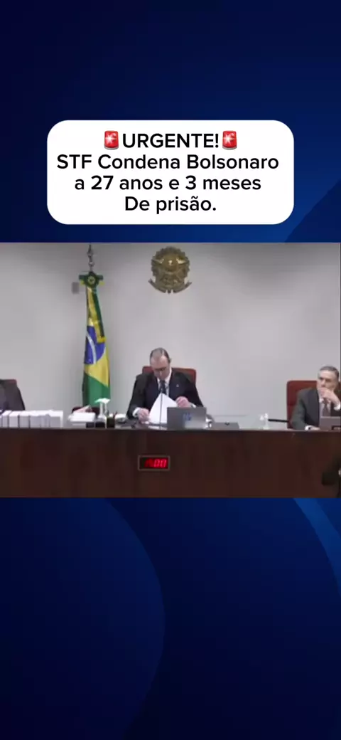 A Primeira Turma do STF (Supremo Tribunal Federal) condenou, nesta quinta-feira (11), o ex-presidente Jair Bolsonaro (PL) a 27 anos e três de prisão na ação que apurou um plano de golpe de Estado após as eleições de 2022. #Bolsonaro #prisão #Brasil #noticias #News