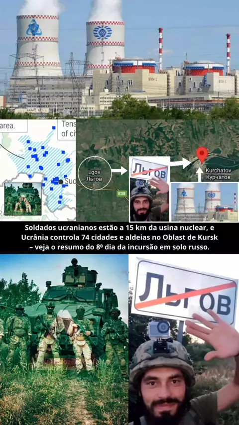 Soldados ucranianos estão a 15 km da usina nuclear, e Ucrânia controla 74 cidades e aldeias no Oblast de Kursk – veja o resumo do 8⁰ dia da incursão em solo russo. No 8⁰ dia da incursão ucraniana, forças de Kiev avançam e controlam 74 cidades e aldeias no Oblast de Kursk, com soldados a apenas 15 km de uma usina nuclear russa. Neste vídeo, veja um resumo completo das operações e os impactos estratégicos dessa ofensiva em território russo. #Ucrânia, #Rússia, #IncursãoUcraniana, #GuerraNaUcrân