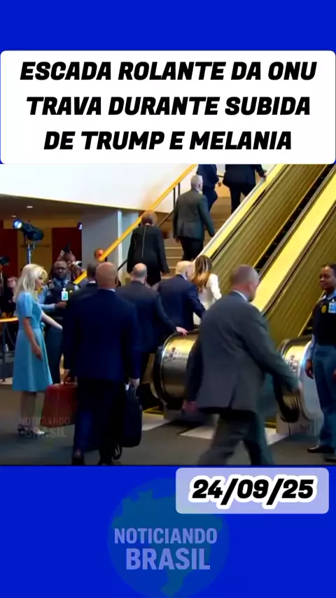 Escada rolante da ONU trava durante subida de Trump e Melania #ONU #trump #viral