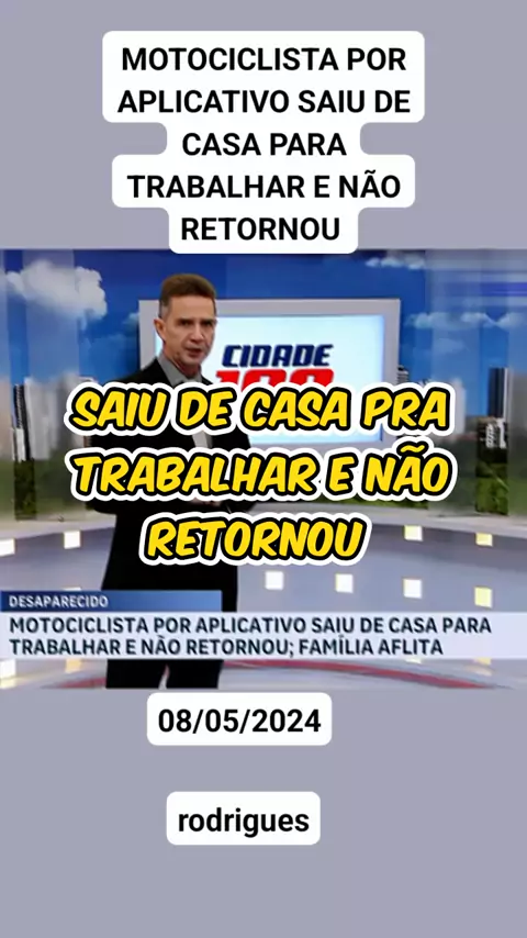 MOTOCICLISTA POR APLICATIVO SAIU DE CASA PARA TRABALHAR E NÃO RETORNOU #noticias