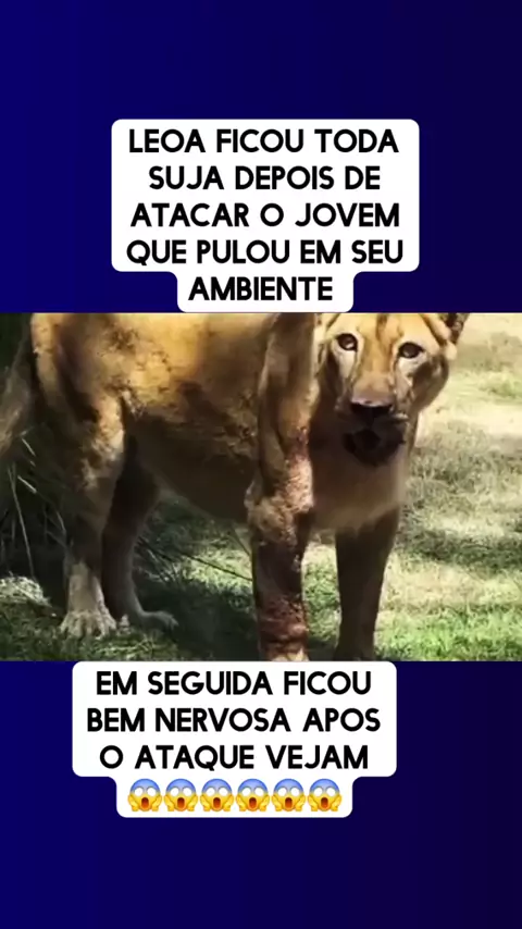 leoa ficou toda suja depois de atacar o jovem que pulou em seu ambiente #noticias #viraliza #TopickerNoKwai #BomPraKWAI #SóCenasBoas
