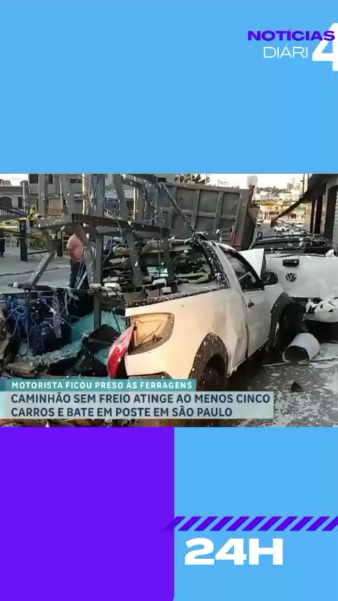 caminhão sem freio atinge ao menos cinco carros e bate em poste, em São Paulo. #Notícia #News #reportagem