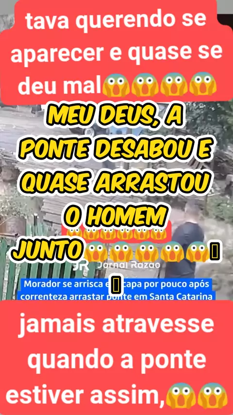meu deus,homem se arrisca atravessando ponte quase submersa e quase e levado junto com a ponte😱😱😱 #noticias #kwai #fy