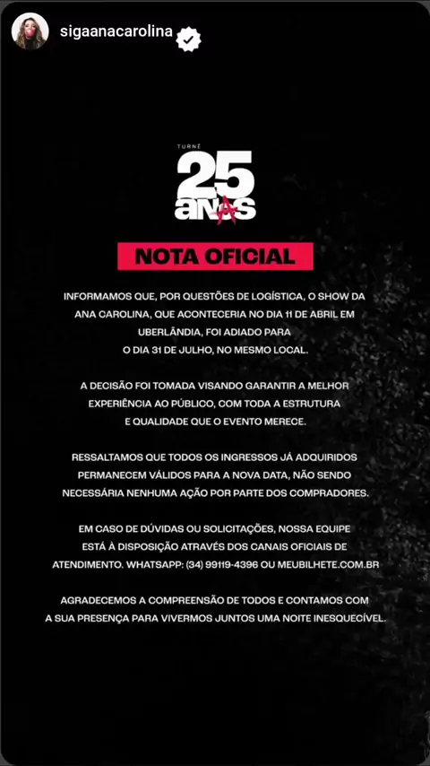 ♡ @sigaanacarolina — “Hoje Eu Tô Sozinha” 👏🏻❤️ Apresentação belíssima e grandiosa no Rock The Mountain! 👑✨ Essa música é um grito! É libertação! É cura! 🎥 Multishow 📍 09/11/2025 – Itaipava, Petrópolis – RJ #Maravilhosa #AnaCarolina #LindezaSemFim #25Anas #NoticiasPopularesdaAnaCarolina
