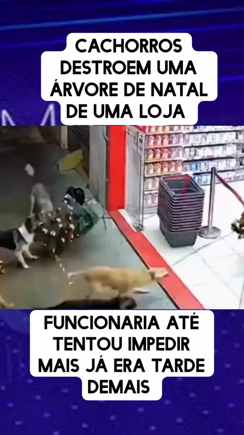 cachorros destroem uma árvore de natal de uma loja #noticias #ultimasnoticias #News #entreterimento #cachorro
