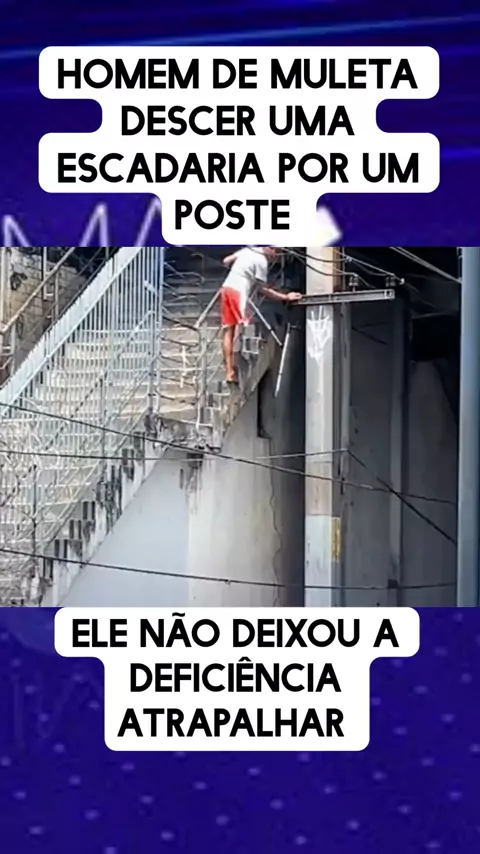 homem de muleta descer uma escadaria por um poste #noticias #ultimasnoticias #News #entreterimento #engraçado