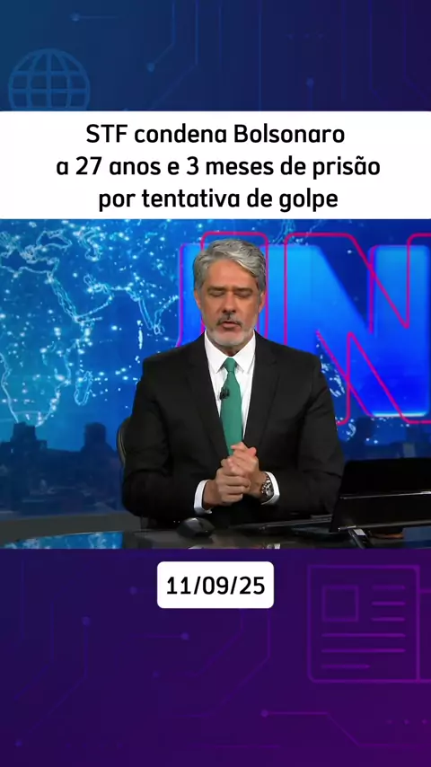 Plantão da Globo: STF condena Bolsonaro a 27 anos e 3 meses de prisão por tentativa de golpe. #ultimasnoticias