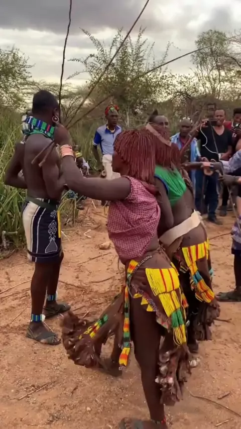 A estranha aparência da tribo querida conferência, pessoa do sexo masculino usar vime para encontrar uma data # África