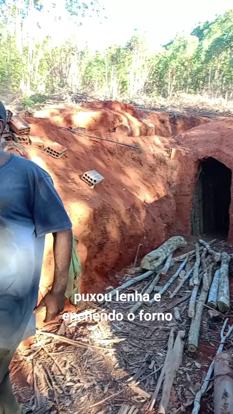 #puxando lenha e enchendo o forno