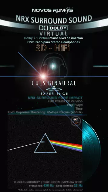 👑 NRX Hi-Fi Supreme: Binaural Voyage 360° 🌀 🎶 Pink Floyd - Time 🚀 Engenharia: Padrão Ultra-Dynamic 6.2 (435Hz) 🔄 Imersão 360°: Sinta os relógios e despertadores girarem ao seu redor com precisão cirúrgica. Uma reconstrução espacial em 32-bit Float. ✅ 💎 Mastering: Algoritmo iZotope Radius em perfeitos -14.16 LUFS. ✨ Clareza: Dinâmica de 85.9dB para revelar cada detalhe escondido. 🌀 🎧 USE FONES: Deixe o tempo parar nesta viagem. 🌀 #PinkFloyd360 #BinauralVoyage #HiFiSupreme #435Hz #NRX