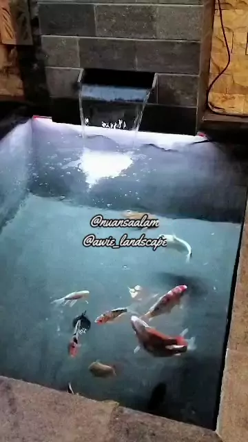 aktivitas ikan di kolam dg view di malam hari🥰❤️🥰 #kolamkoi #kolamminimalis #desainkolamkoi #koilover