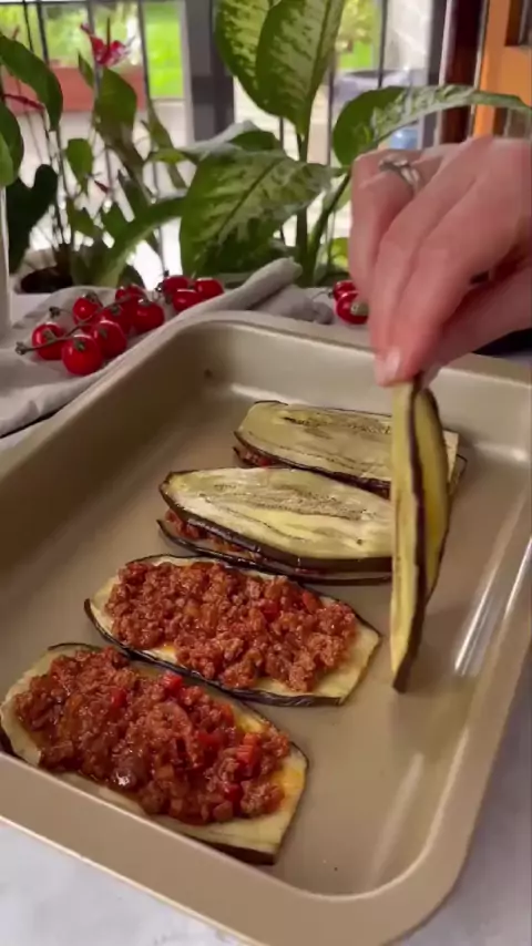 Ingredientes: • 2 berinjelas grandes e grossas • 5 colheres de sopa de óleo • Sal e pimenta-do-reino Recheio: • 200–250 g de carne moída • 1 cebola • 2 dentes de alho • 1 pimenta vermelha • 1 colher de chá de purê de tomate • 7–8 colheres de sopa de molho de tomate • Tomilho, páprica • 1/2 colher de chá de pimenta-do-reino • Sal • 200 ml de água quente • Mussarela fatiada #ComidaFit #ReceitasSaudáveis #emagrecimento