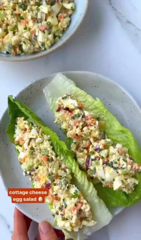 Salada de ovo com queijo cottagešŸ„— • Ovo cozido • Cenoura • SalsĆ£o • Cebola Roxa • Cottage • Homus #Receita #salada #fit #saudavel #receitafit