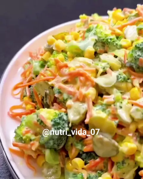 Salada de brócolos Ingredientes: 500 gramas de brócolos 2 unidades de cenoura ralada 5-6 picles picados 1 lata de milho Para o molho: Salsa recém picada 2 dentes de alho, ralado 6-7 colheres de sopa de iogurte, 2 colheres de maionese. 1 colher de molho de mostarda Pimenta preta. #Receita
