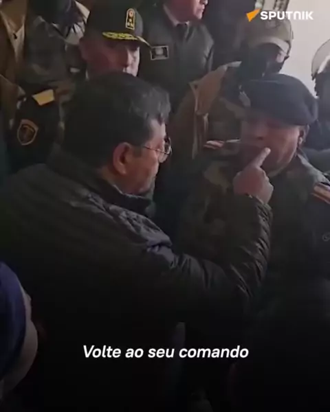 Confira o que disse Luis Arce ao general Zúñiga em vídeo obtido pela Sputnik A Sputnik conseguiu obter um vídeo onde se vê o presidente da Bolívia, Luis Arce, falando com o general Juan José Zúñiga durante a tentativa de golpe de Estado. A conversa ocorreu no palácio da capital, pouco antes de Arce discursar à nação e nomear uma nova liderança militar. #noticias🌍