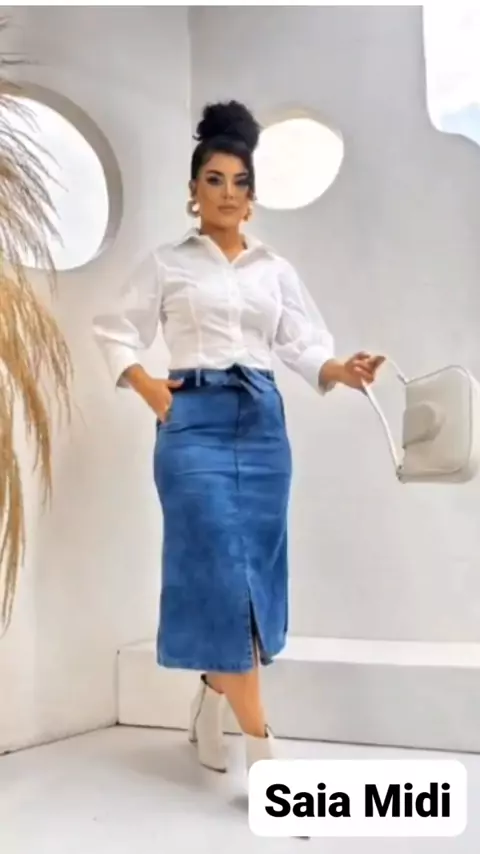 Confira SAIA PLUS SIZE JEANS MIDI FEMININA FENDA FRONTAL com 7% de desconto! #modaplussize #like4like #promoção #Tools #viraliza