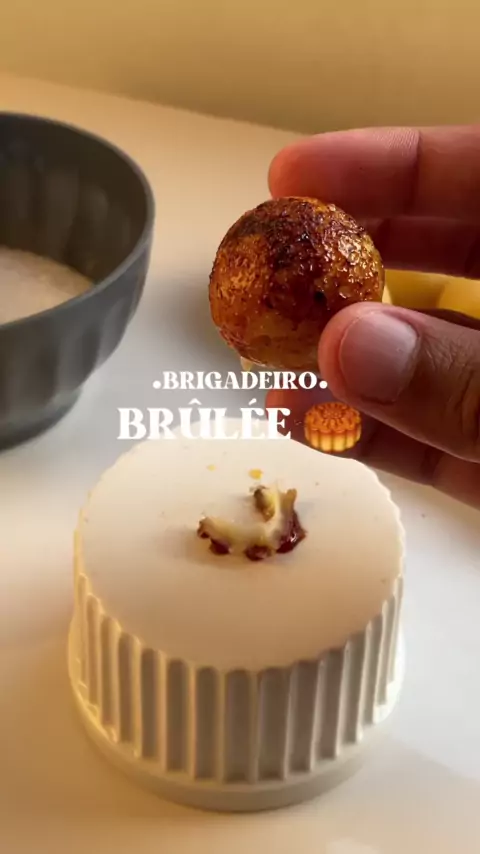 1 LC 1 CL 1 colher de essência de baunilha 1 gema Açúcar cristal de confeito #doce #brigadeiro #brûlée #Receita #viral