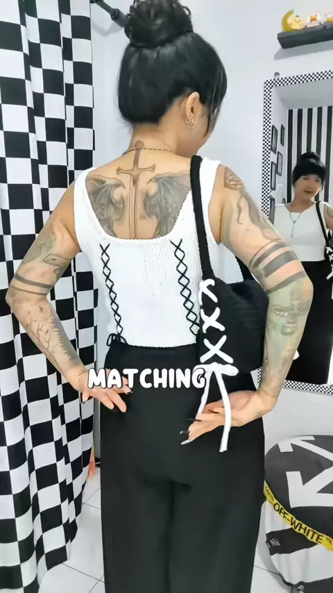 Bikin crochet bag yang matching sama crochet top ku 🤍🖤 . .#crochet#crochetbag#crochettop#rajut