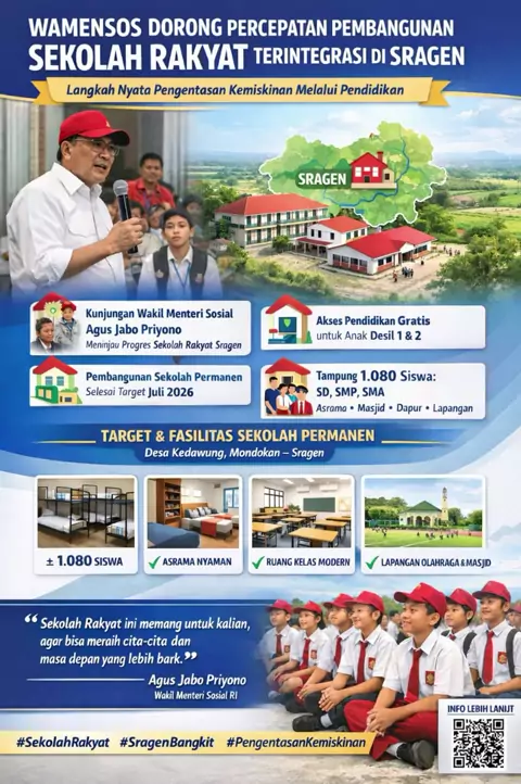 Percepatan pembangunan Sekolah Rakyat Terintegrasi untuk memutus rantai kemiskinan, meningkatkan kualitas SDM, dan mewujudkan pemerataan kesejahteraan yang inklusif. #SekolahRakyat