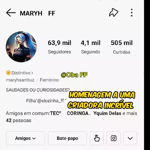 🔥 @Oba FF Oficial 🔥 🎮 Free Fire | Criador de Conteúdo ✨ Destaques • Memes • Gameplay 🌎 SGC/AM 👑 Distintivo Platina 🏆 Rumo ao Mestre (Aleatório) 🤝 Humilde, sempre deixando like ✨