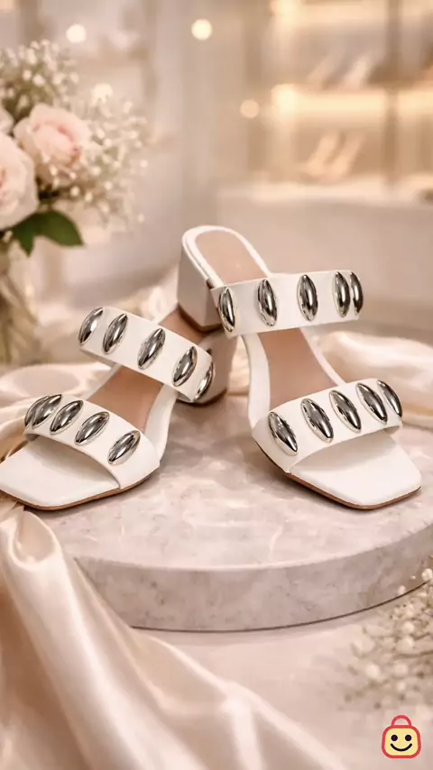 Tamanco feminino elegante com apliques metálicos estilo lesma salto baixo luxo #tamanco #tamancofem #calcados #modafem #estilo