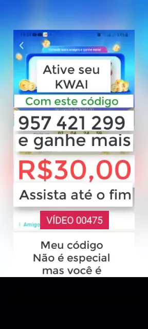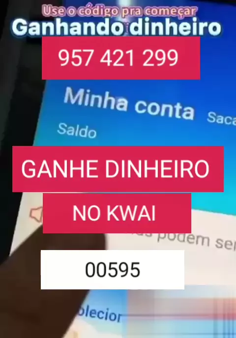 00595 Use o meu código 957 421 299 e comece a ganhar dinheiro no kwai. #ganhedinheiro #kwaibonus #dinheirofácil #dinheirokwai