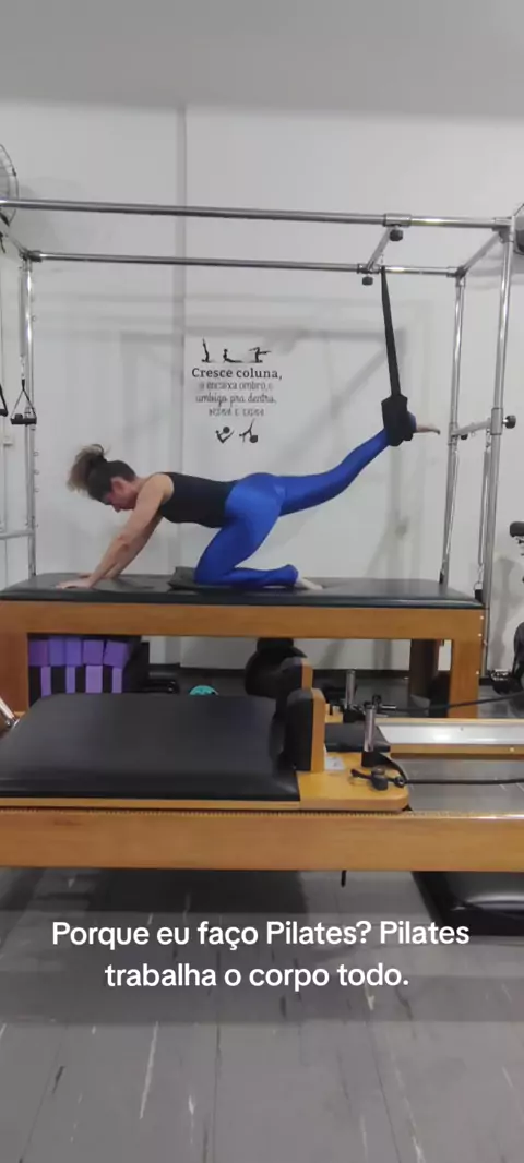 Porque eu faço Pilates? Pilates trabalha o corpo todo de forma integrada, focando no fortalecimento muscular (especialmente o "core"), flexibilidade, equilíbrio e consciência corporal. A prática melhora a postura, alivia dores crônicas, tonifica os músculos sem aumentar o volume e reduz o estresse, sendo uma atividade segura para todas as idades.