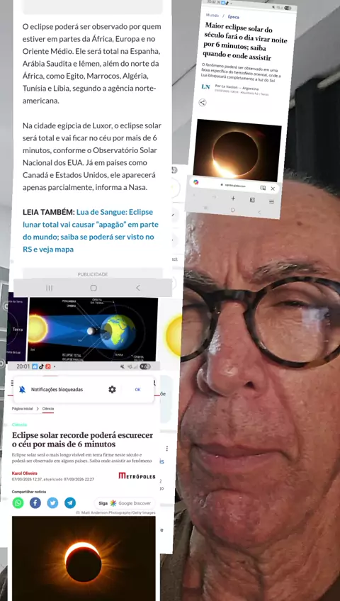 #Eclipsesolar Tema dos Vídeos: Eclipse solar recorde poderá escurecer o céu por mais de6 minutos