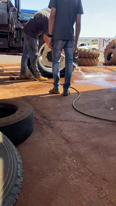 CALIBRANDO O PNEU DO TRATOR COM ÁGUA E AR.