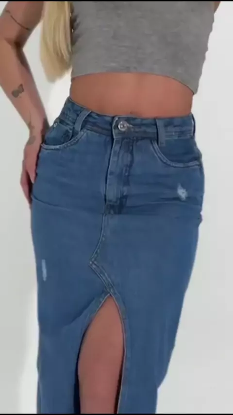 #SaiaJeansMidi #ModaMarmorizada #CinturaAlta #FendaLateral #LookFashion Copie o link e cole no navegador para comprar com desconto! 👇🏼 https://br.shp.ee/k7fbhok?smtt=0.0.9