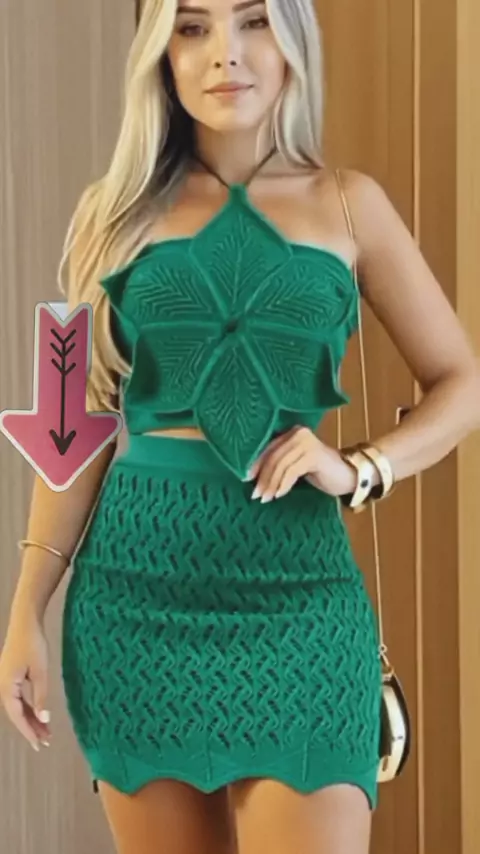 Conjunto Tricô De Modal Cropped Com Saia Curto Verão Moda.