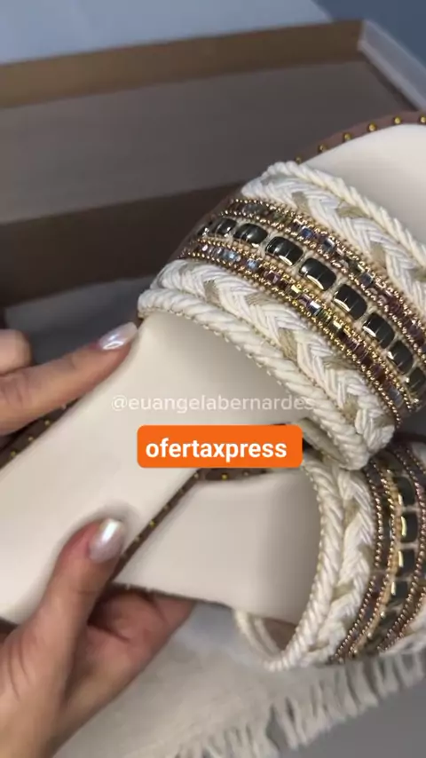 Rasteirinha Estilo Boho Chic Exclusiva Feminina Tecido Artesanal Sandália Marrocos Indiana Bico Quadrado #viraliza #sandália #kwai #MODA