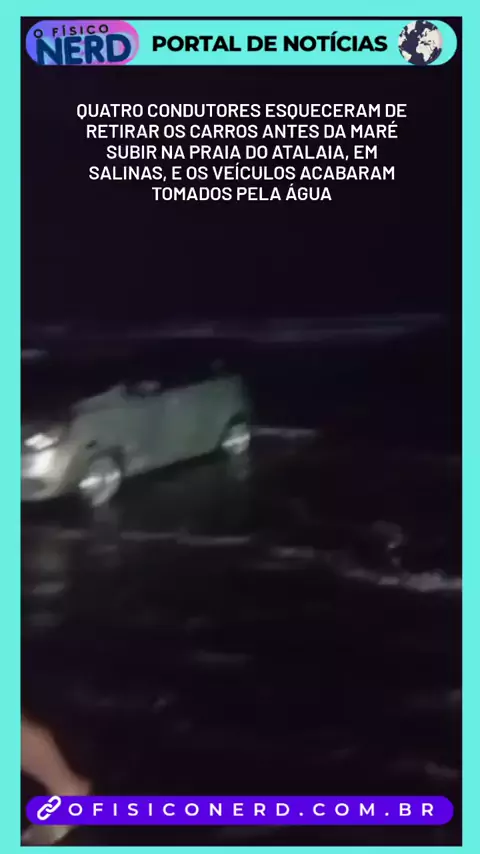Quatro condutores esqueceram de retirar os carros antes da maré subir na praia do Atalaia, em Salinas, e os veículos acabaram tomados pela água.