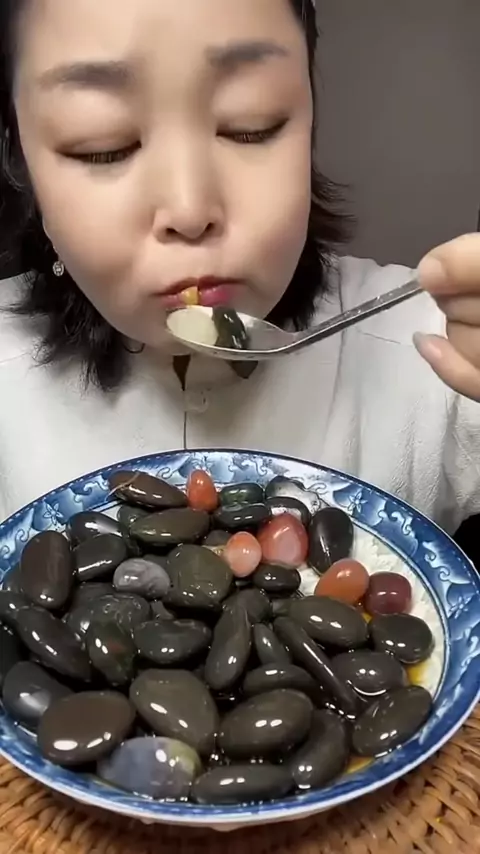 Wanita Ini Makan B4tu Dengan Semangat Sekali #mukbang #makan #batu #kelaparan #nontondisnack