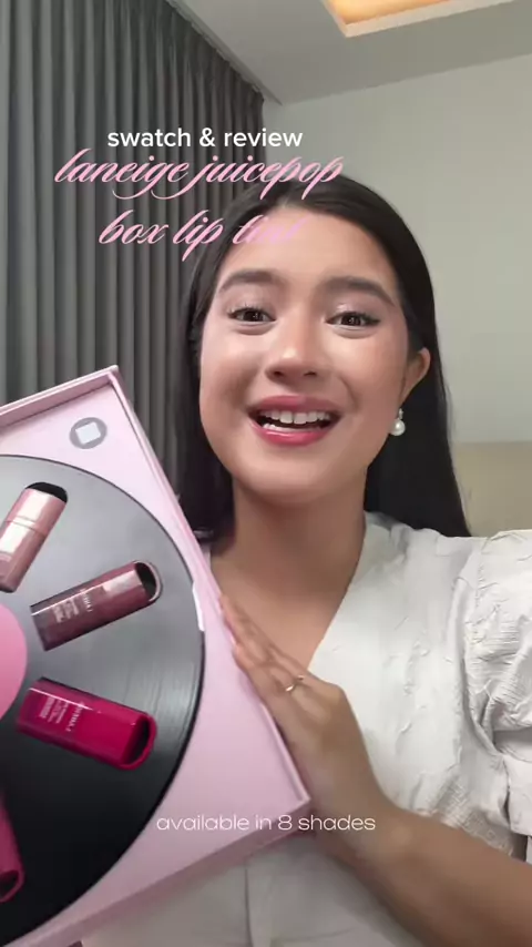 look! ini dia laneige juicepop box lip tint😳🎵💗 dia ada 8 shades yang cantik cantik banget. finishnya glossy, hydrating, dan stainnya natural. personally di aku glossynya gampang ilang jadi harus rajin rajin reapply yaa (which i dont mind hehe) shade favorit kalian yang mana nih? let me know di komen ya✨ @Laneige Indonesia Official #Laneige #JuicePopBoxLipTint #TurnUpTheTint #PressPlayLips #ColorYouCanFeel