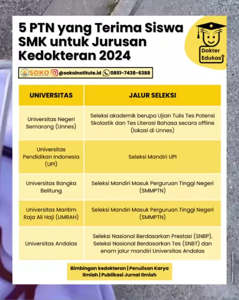 5 PTN yang terima siswa SMK untuk jurusan Kedokteran 2024! Bisa dijadikan pilihan dan pertimbangan nih buat yang mau masuk kedokteran. Jangan lupa persiapkan diri kamu sebaik mungkin yaa πŸ€—πŸ˜πŸ“š##masukfk#snbt2024#utbk2024#fakultaskedokteran#kedokteran#masukkampus#pejuangkedokteran#kampus#information#klarifikasi