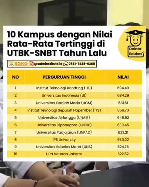 mimin ada data 10 kampus dengan rata-rata nilai UTBK tertinggi tahun lalu nih, yuk langsung aja disimak 😊😊#masukkuliah#snbp#jalurundangan#kuliah#kampus#kuliahseru#rasionalisasi#kampusmerdeka#kelas12#sma#PersiapanKuliah#mahasiswa#ptn#kuliahtanpates#nilai