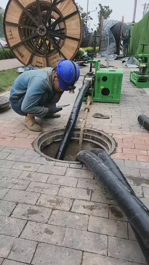 How does a 3×150 cable pass through a 400 pipe? Please watch our accelerated construction process, passionate 😃 #cablelaying #cablepulling #cableconveyor #cablemachine #CableConveyorMachine