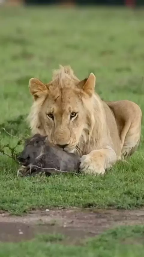 leão brincando com a presa #kwai #animais #natureza #selvagem #Leão