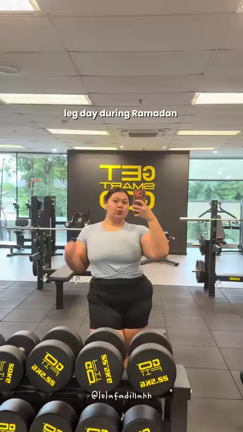 leg day pas puasa jyujuuuur ada bbgt lemes nya hahahahahahhaa tapi tetep harus kita kuatkan yaaaaa otot otot lower itu🫵🏻😭 . #GymRat #SweatWithLola #RamadanDi #PlusSize
