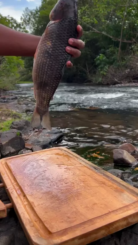 Peixe recheado assado na beira do rio, amo d+ ! #SouMulher #Cachoeira #tilapia #chapada #traira